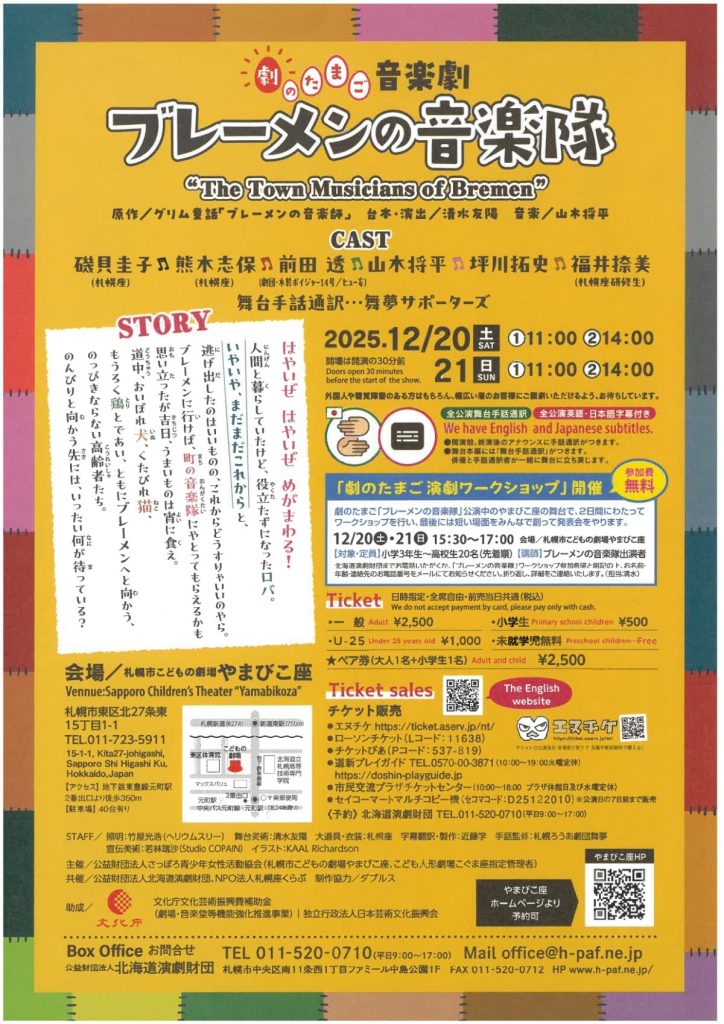 ・会場:札幌市こどもの劇場 やまびこ座(札幌市東区北27条東15丁目1-1 )